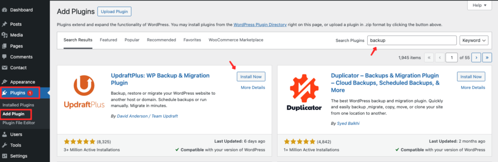 Langkah ini bertujuan untuk menambahkan fitur backup ke website WordPress Anda.