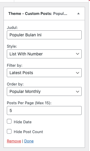 • Posts Per Page: Menentukan jumlah artikel yang ditampilkan.