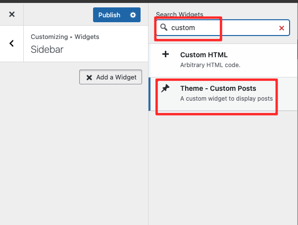 Widget Custom Post tersedia pada tema Opini, Linimasa, Rubrik, Alenia, Spotlight, KabarPlus, dan Editorial.